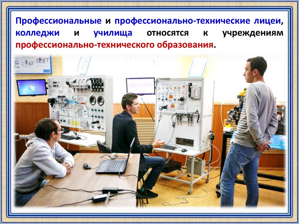 Профессиональные и профессионально-технические лицеи,колледжи и училища относятся к учреждениям