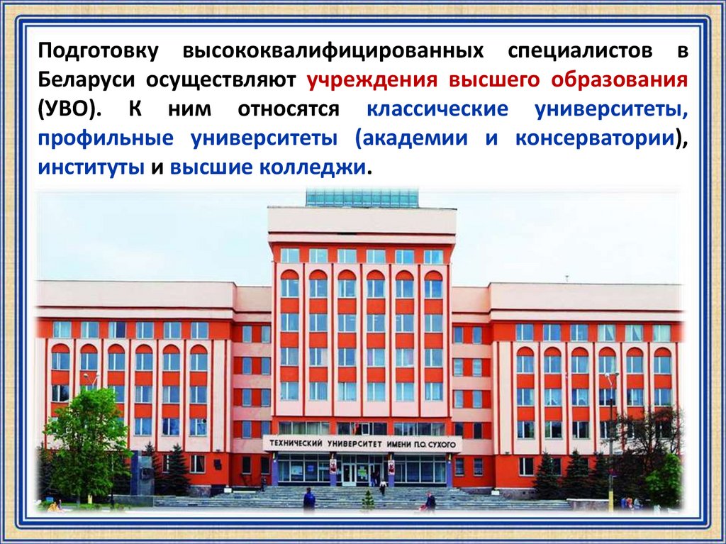 Подготовку высококвалифицированных специалистов вБеларуси осуществляют учреждения высшего образования