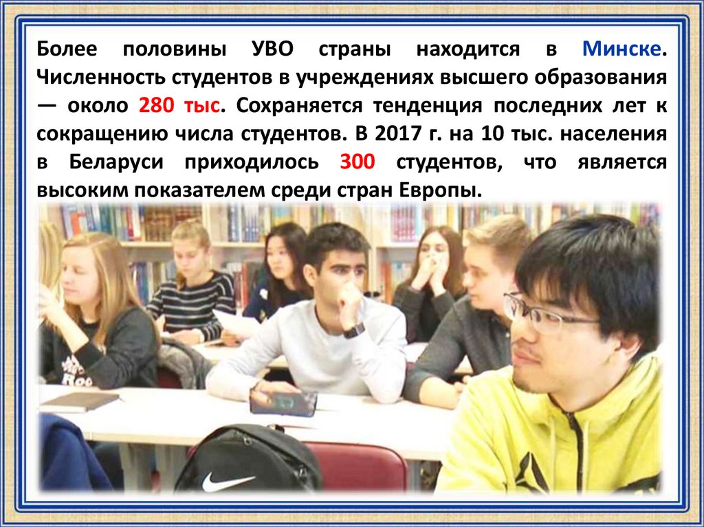 Более половины УВО страны находится в Минске.Численность студентов в учреждениях высшего образования