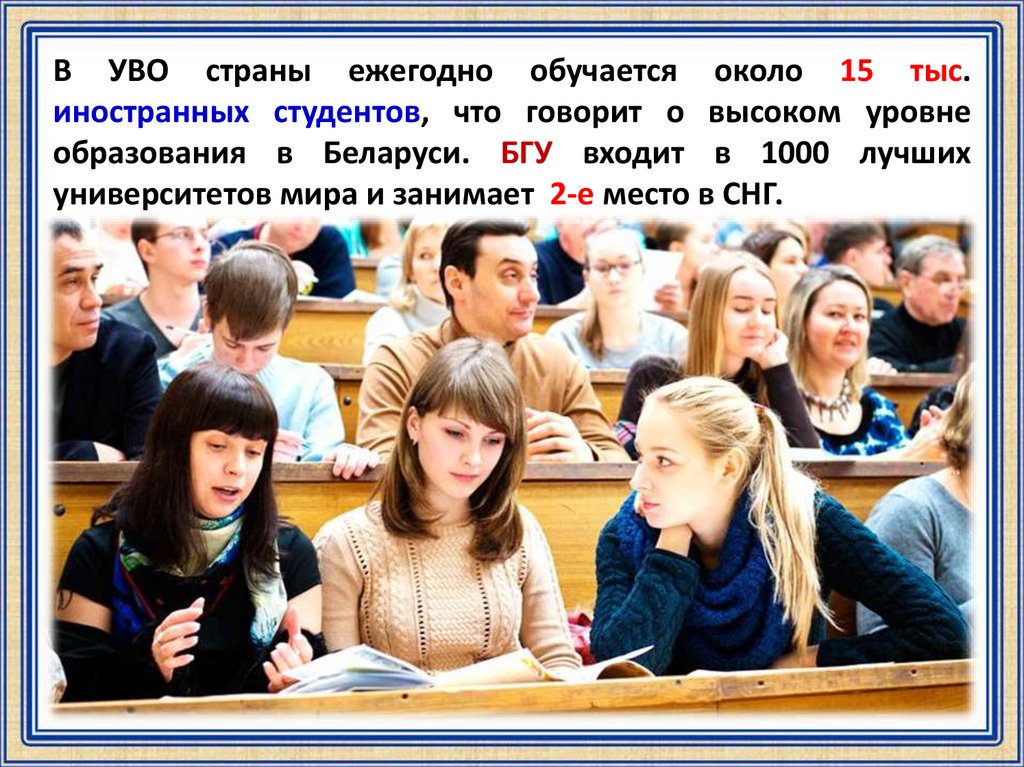 В УВО страны ежегодно обучается около 15 тыс.иностранных студентов, что говорит о высоком уровне