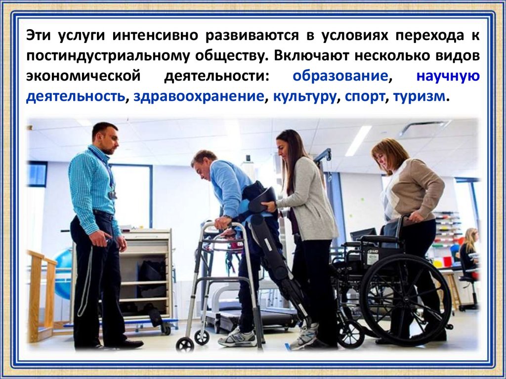 Эти услуги интенсивно развиваются в условиях перехода кпостиндустриальному обществу. Включают несколько видов