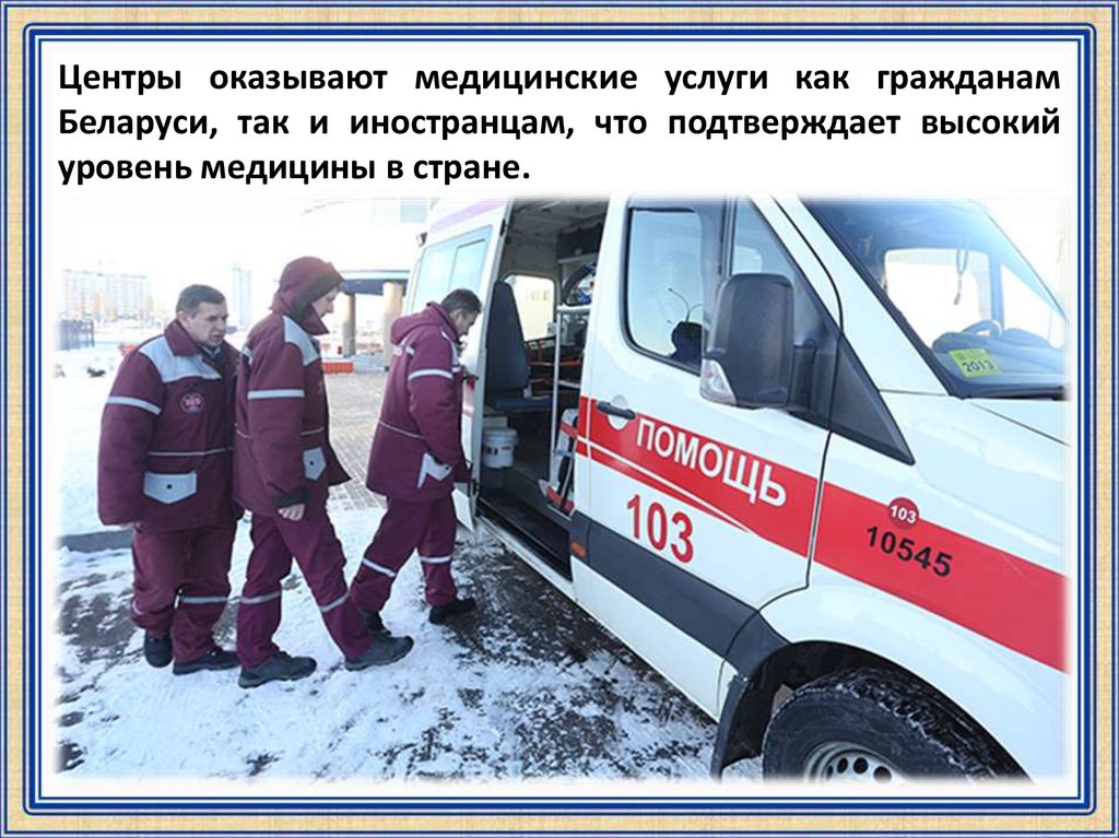 Центры оказывают медицинские услуги как гражданамБеларуси, так и иностранцам, что подтверждает высокий