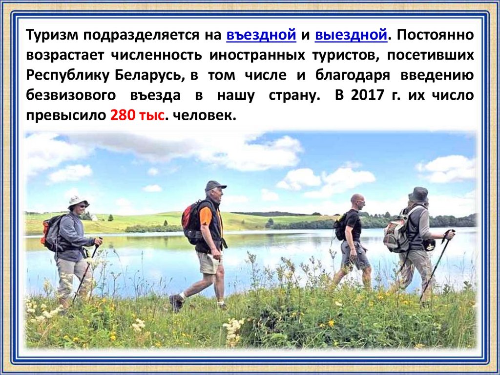 Туризм подразделяется на въездной и выездной. Постоянновозрастает численность иностранных туристов, посетивших