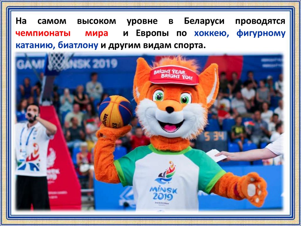 На самом высоком уровне в Беларуси проводятсячемпионаты мира и Европы по хоккею, фигурному