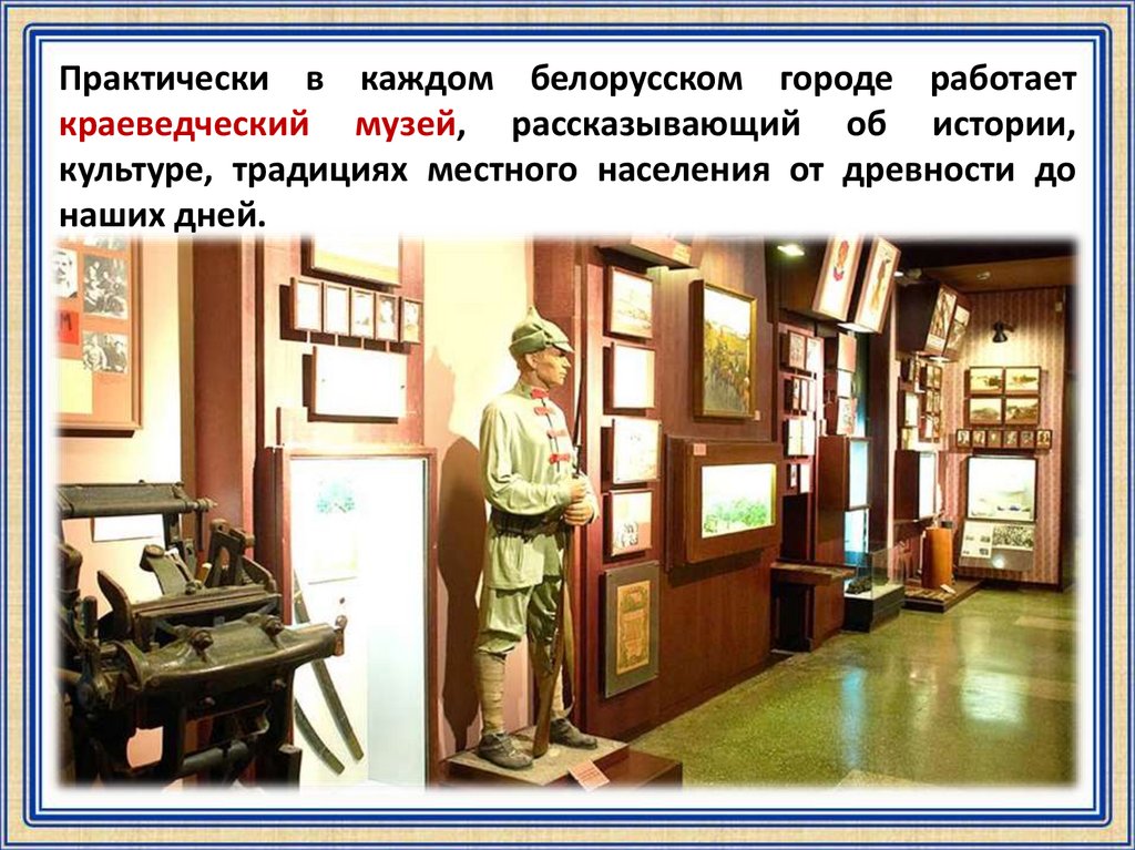 Практически в каждом белорусском городе работаеткраеведческий музей, рассказывающий об истории,