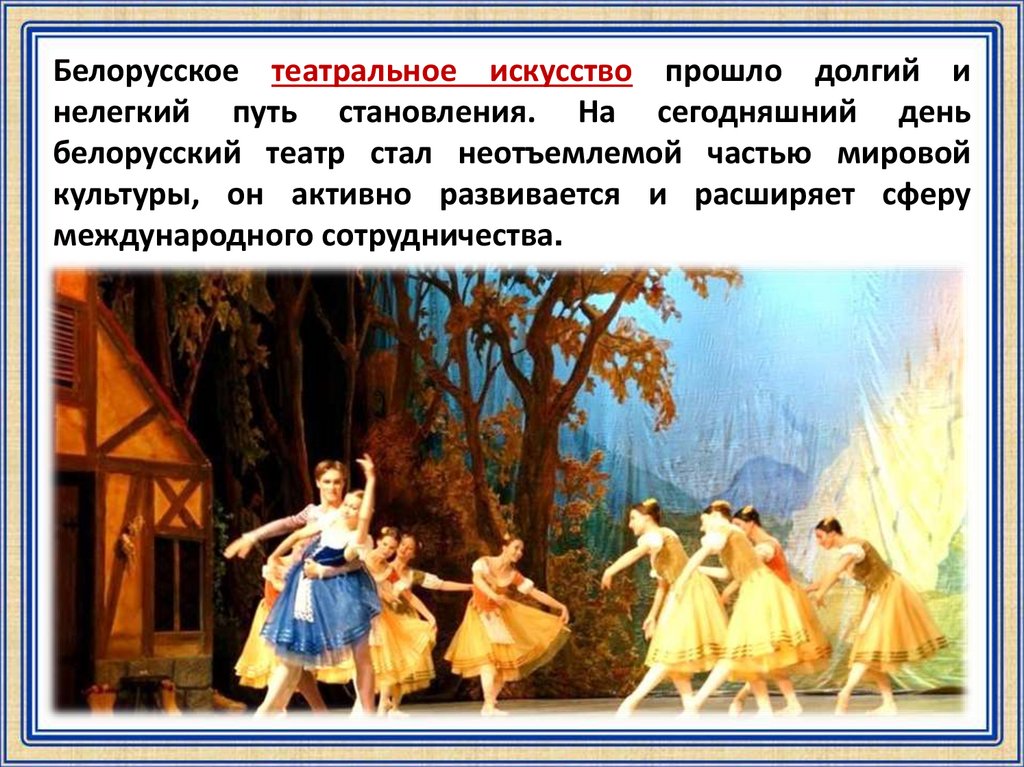 Белорусское театральное искусство прошло долгий инелегкий путь становления. На сегодняшний день
