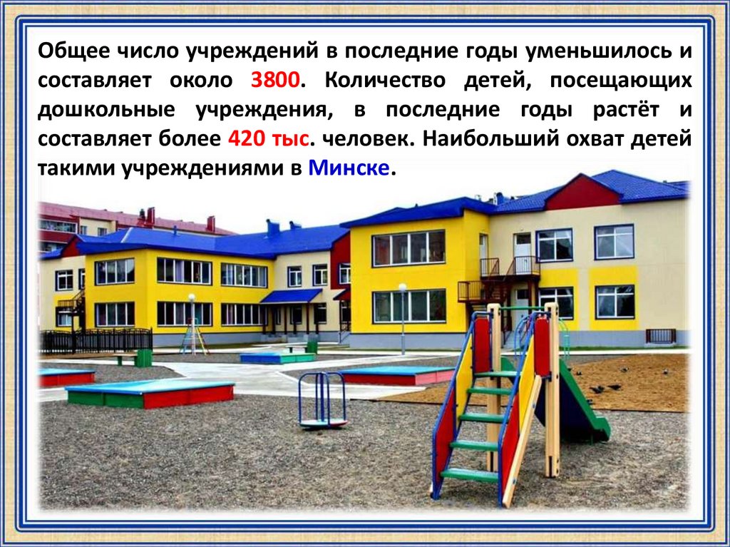 Общее число учреждений в последние годы уменьшилось исоставляет около 3800. Количество детей, посещающих