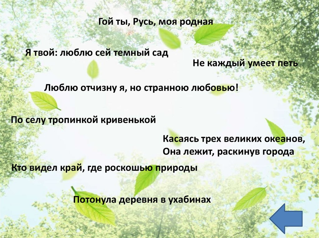 Гой ты, Русь, моя роднаяЯ твой: люблю сей темный сад