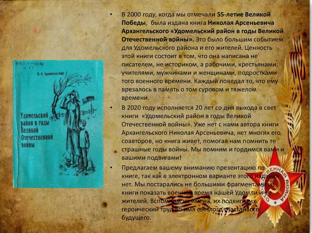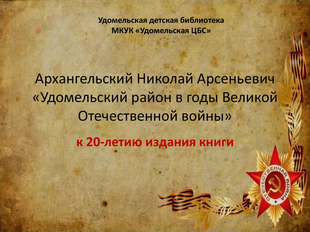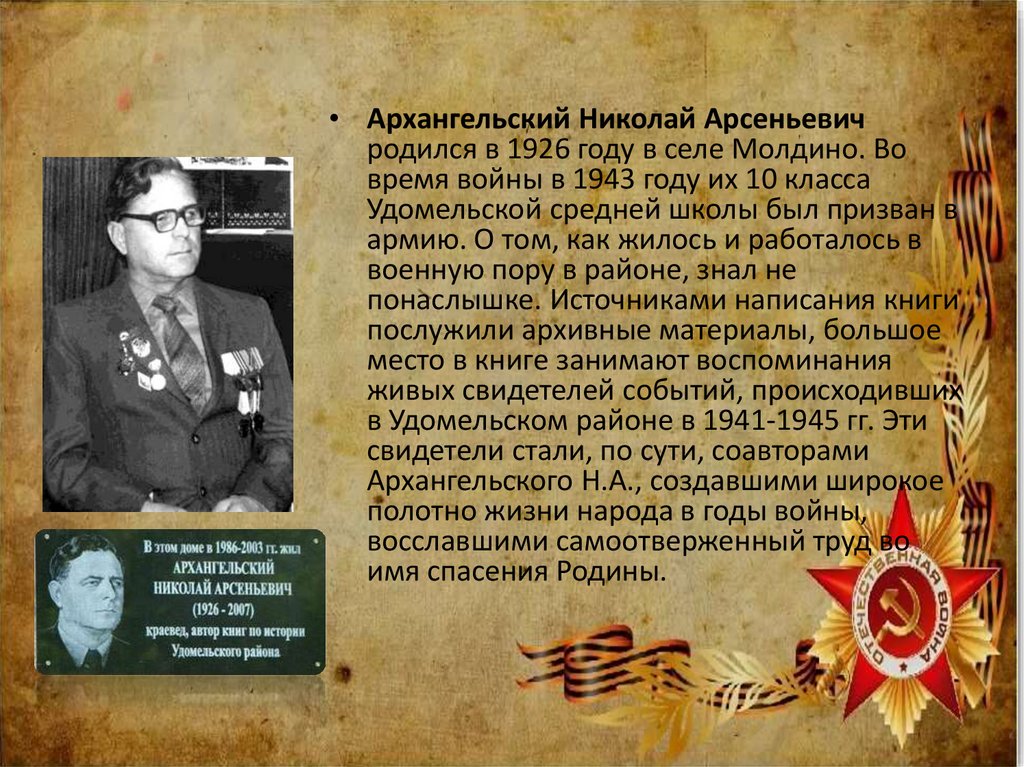1. Архангельский Николай Арсеньевич «Удомельский район в годы Великой Отечественной войны»
