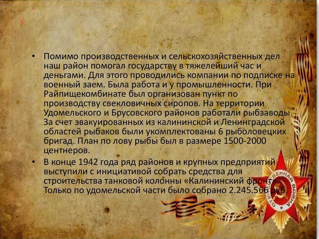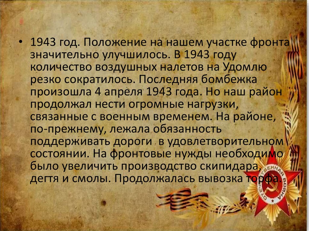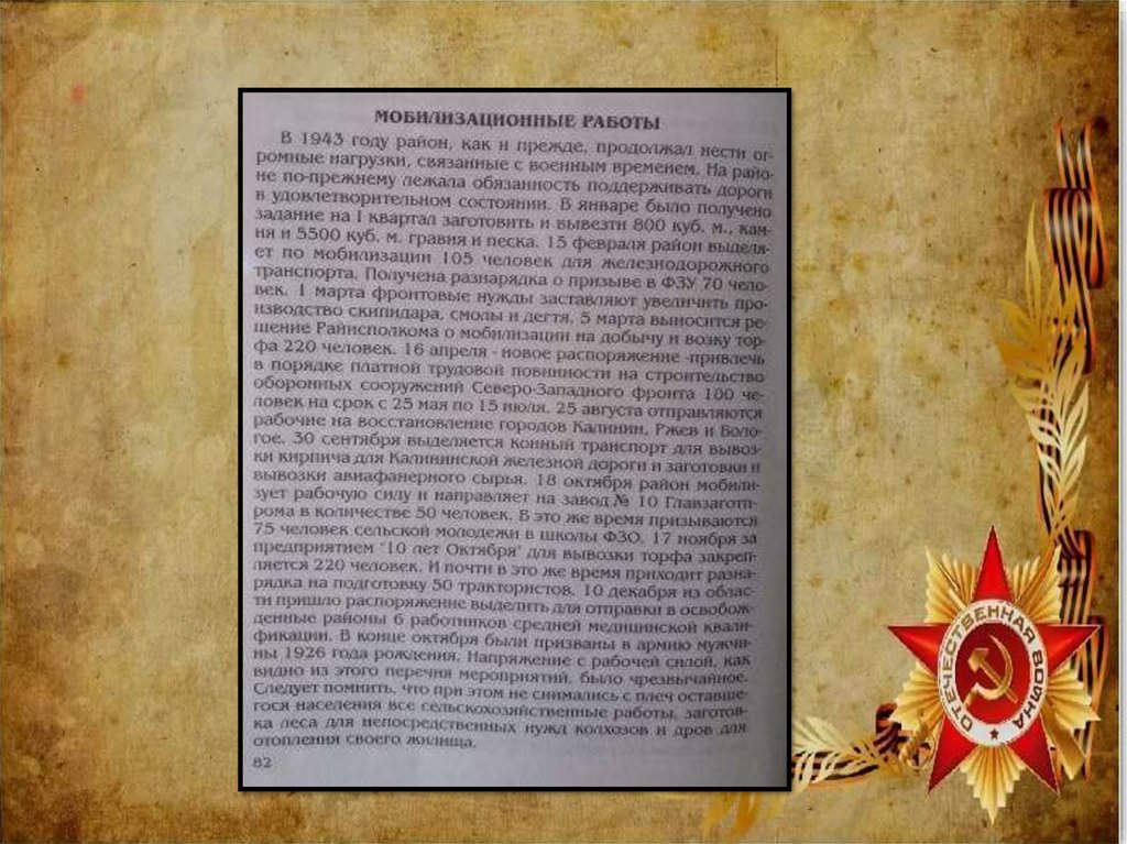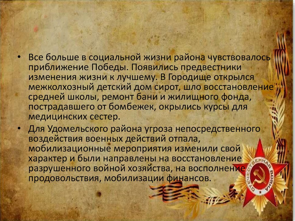 • Все больше в социальной жизни района чувствовалосьприближение Победы. Появились предвестники