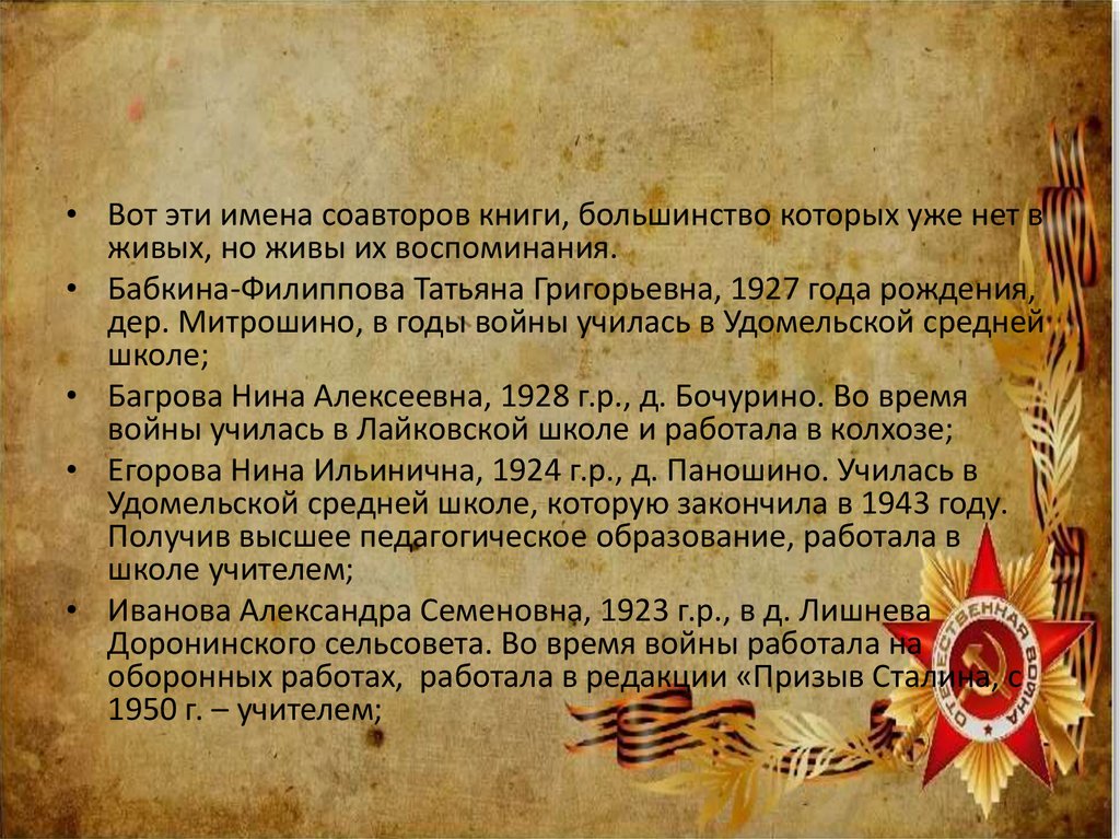 • Вот эти имена соавторов книги, большинство которых уже нет вживых, но живы их воспоминания.