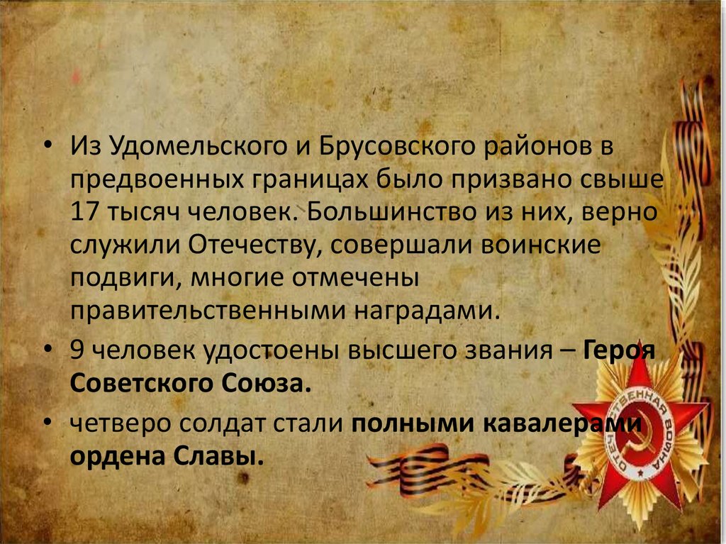 • Из Удомельского и Брусовского районов впредвоенных границах было призвано свыше