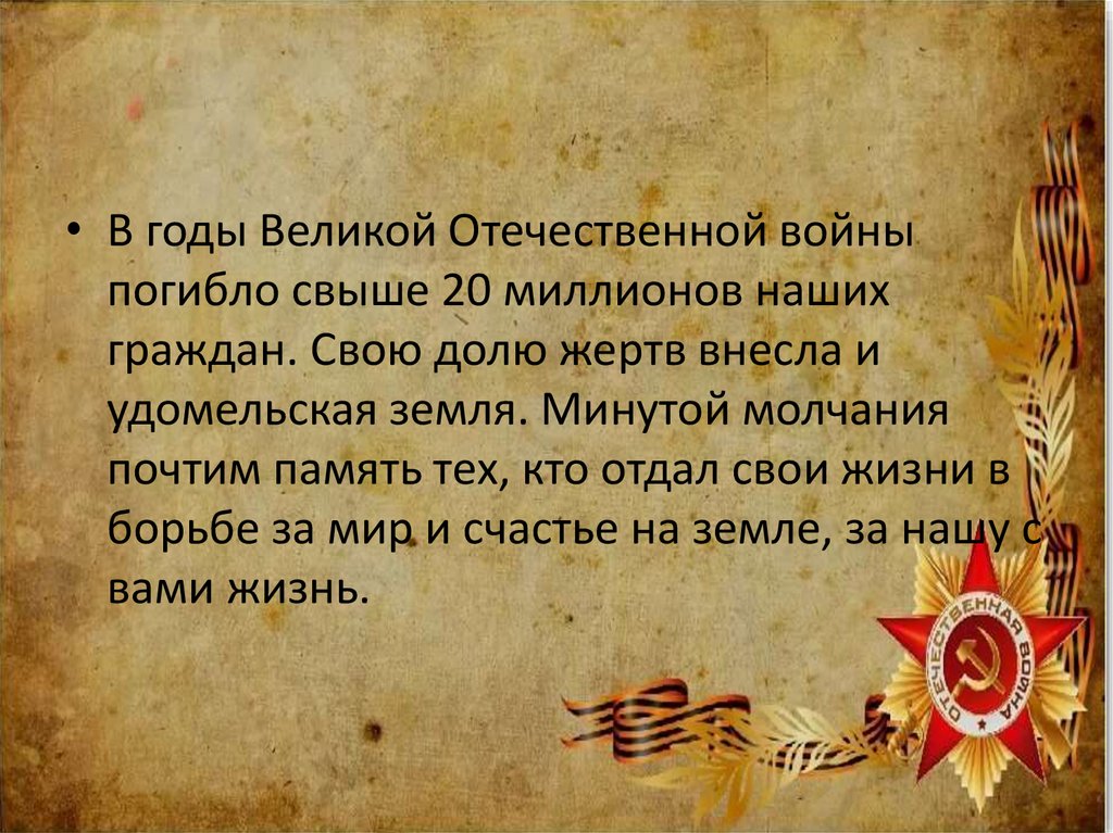 • В годы Великой Отечественной войныпогибло свыше 20 миллионов наших