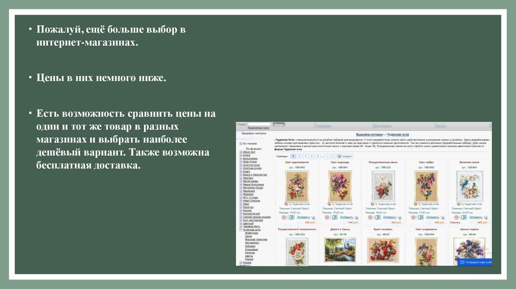 • Пожалуй, ещё больше выбор винтернет-магазинах.