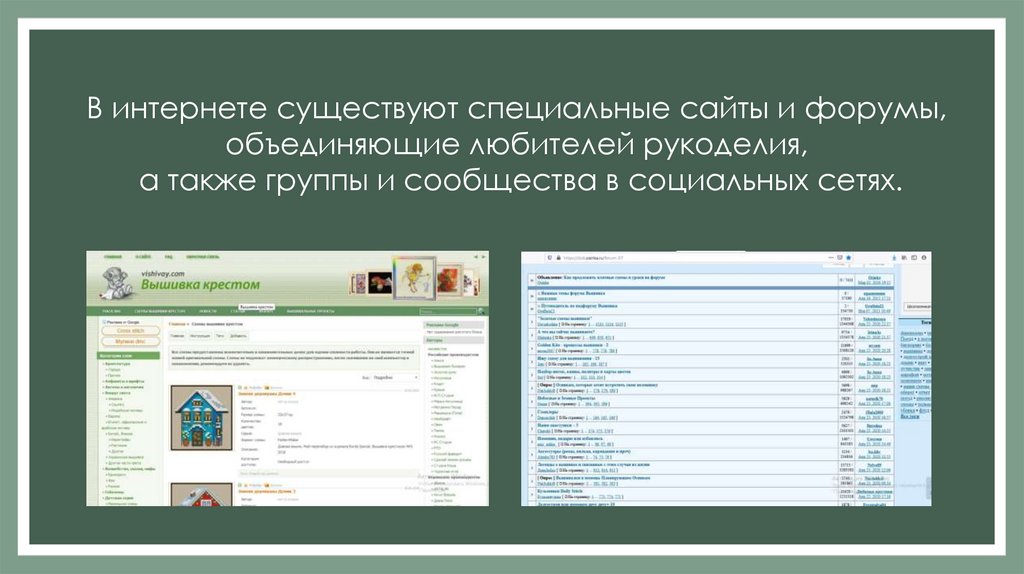 В интернете существуют специальные сайты и форумы,объединяющие любителей рукоделия,