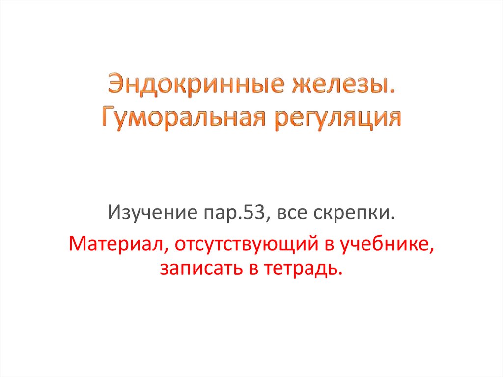 1. Эндокринные железы. Гуморальная регуляция