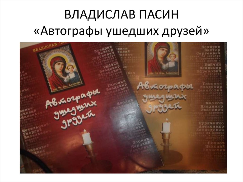 1. ВЛАДИСЛАВ ПАСИН «Автографы ушедших друзей»