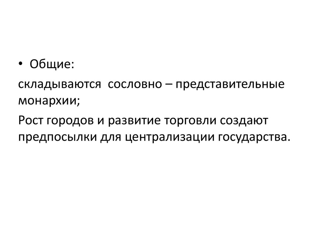 • Общие:складываются сословно – представительные