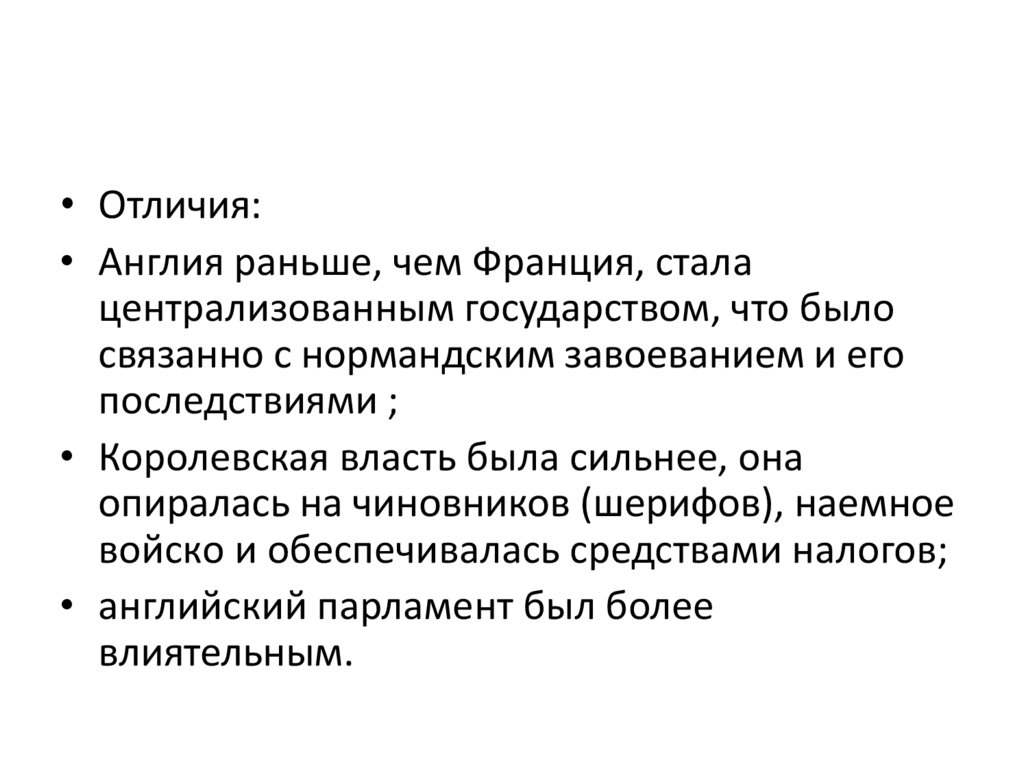• Отличия:• Англия раньше, чем Франция, стала