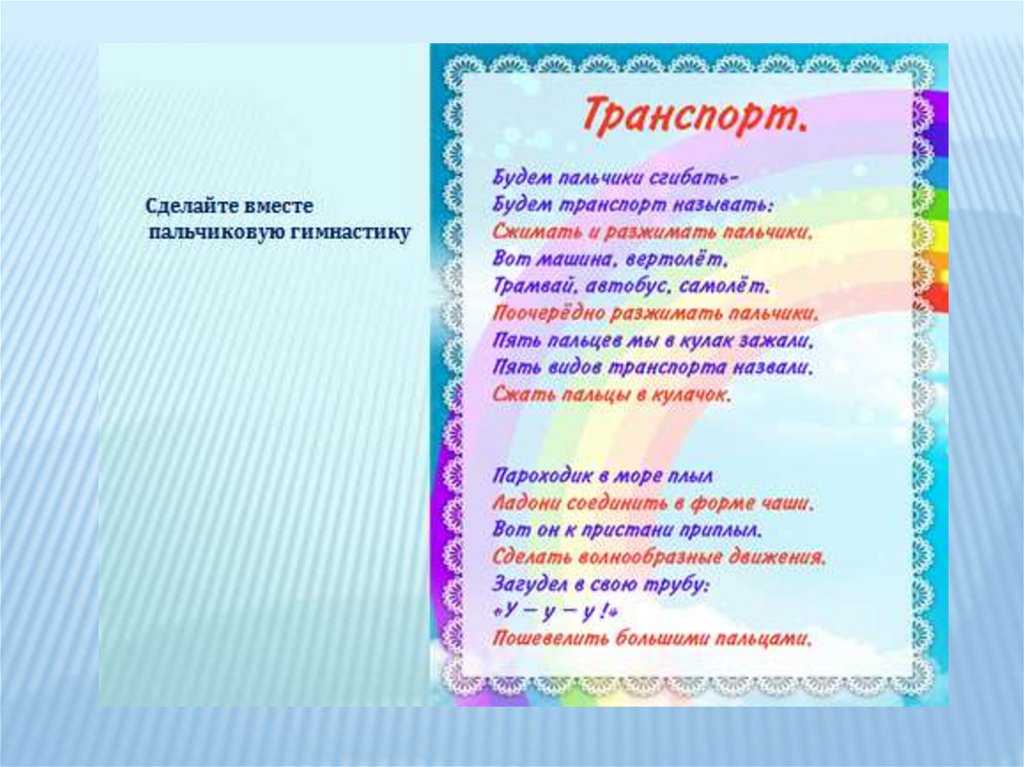 Расскажите сначала сами ребенку о любом транспорте. Затем с опорой на