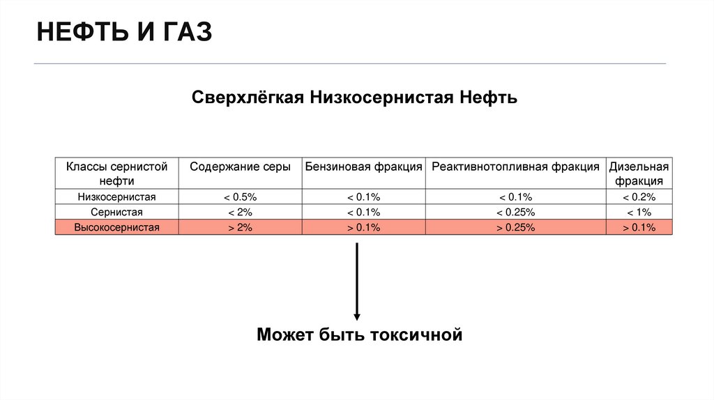 НЕФТЬ И ГАЗСверхлёгкая Низкосернистая Нефть