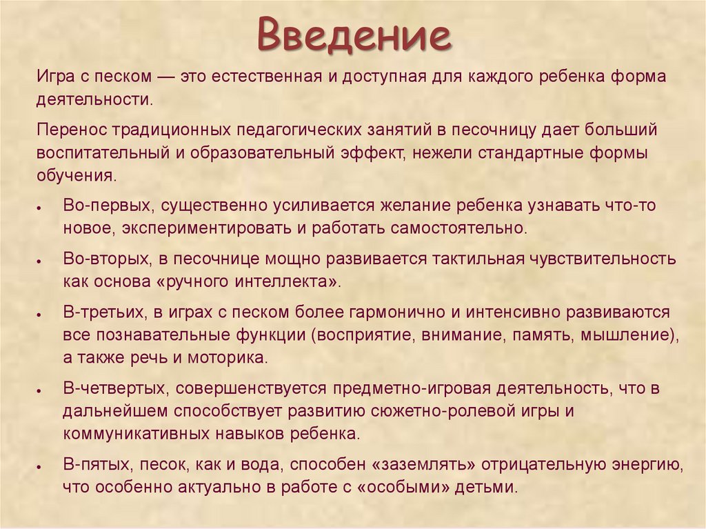 ВведениеИгра с песком — это естественная и доступная для каждого ребенка форма