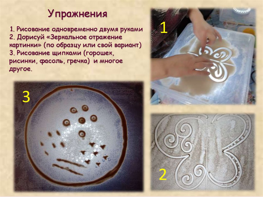 • Учить создавать статичные песочные картины с учётом ритма, симметрии;