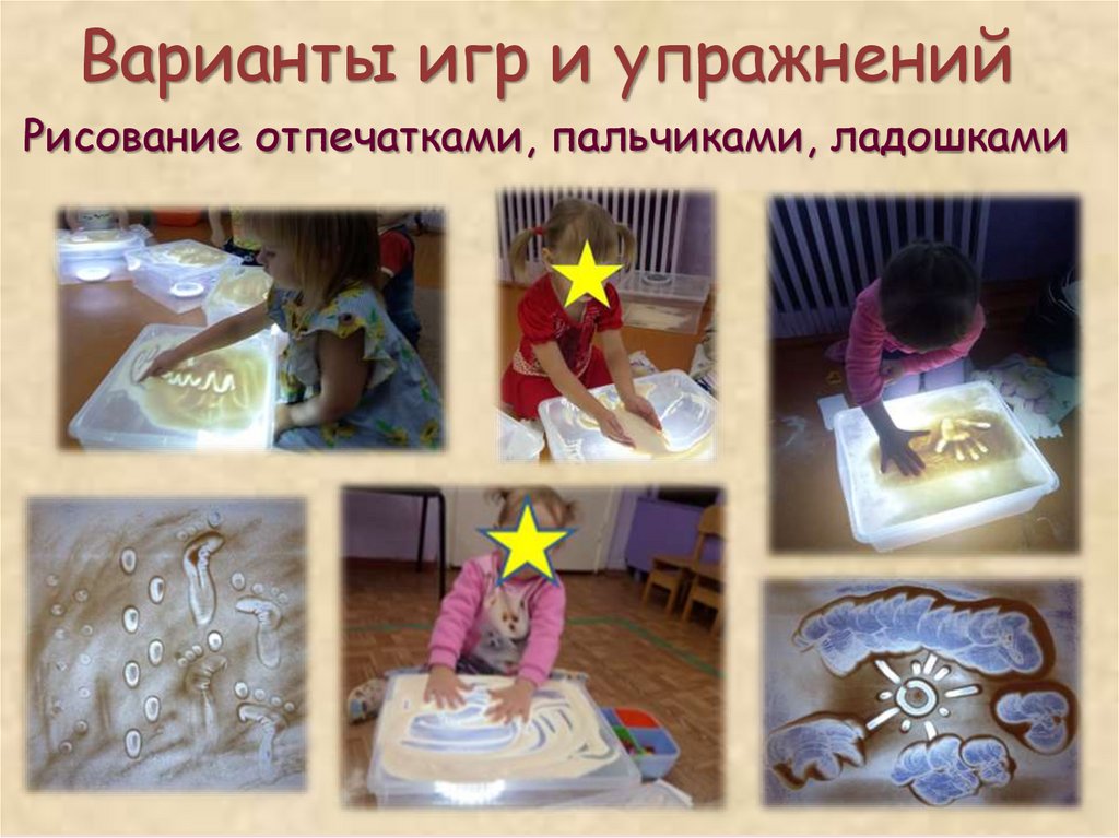 Варианты игр и упражненийРисование отпечатками, пальчиками, ладошками
