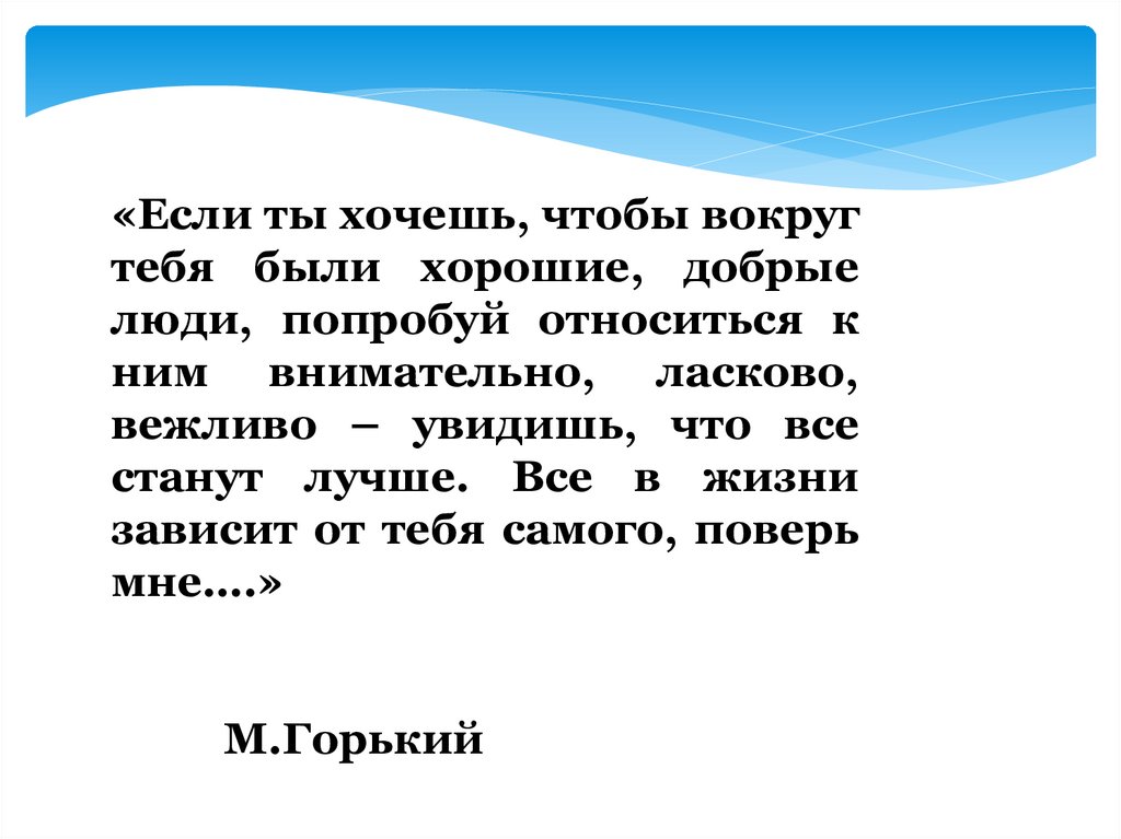 «Если ты хочешь, чтобы вокругтебя были хорошие, добрые