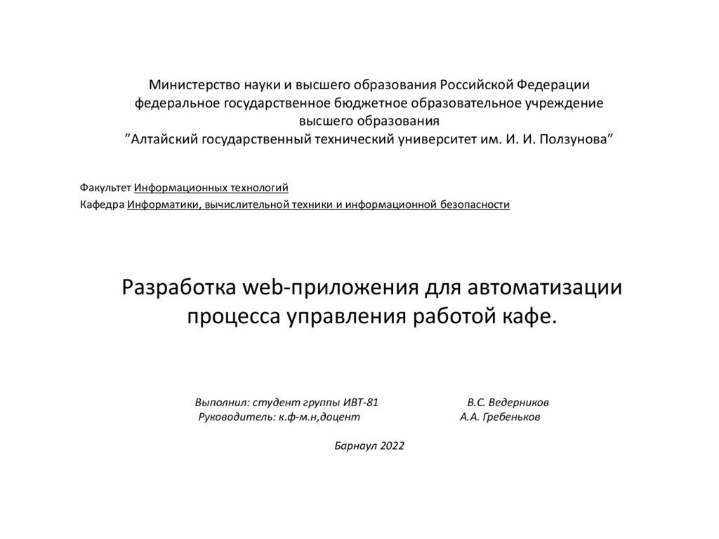 ”Алтайский государственный технический университет им. И. И. Ползунова”
