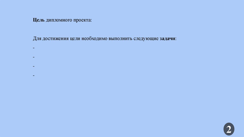 Цель дипломного проекта:Для достижения цели необходимо выполнить следующие задачи: