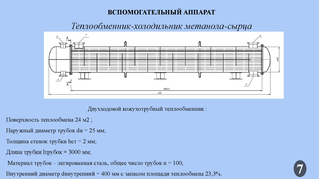 ВСПОМОГАТЕЛЬНЫЙ АППАРАТТеплообменник-холодильник метанола-сырца