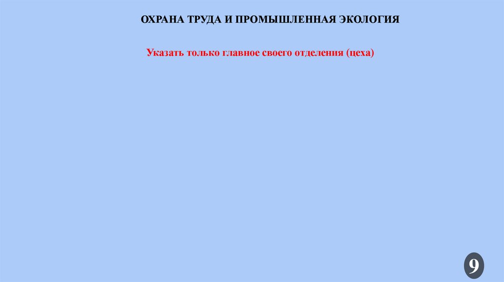 ОХРАНА ТРУДА И ПРОМЫШЛЕННАЯ ЭКОЛОГИЯУказать только главное своего отделения (цеха)