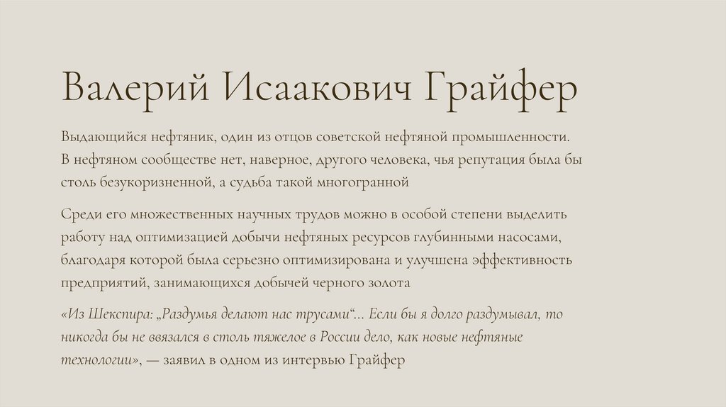 Валерий Исаакович ГрайферВыдающийся нефтяник, один из отцов советской нефтяной промышленности.