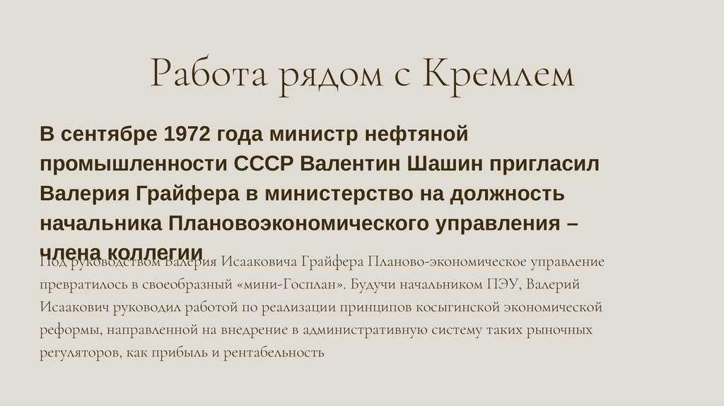Работа рядом с КремлемВ сентябре 1972 года министр нефтяной