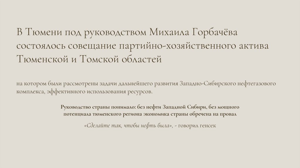 Сибири в 1986-1990 годах», – увеличить добычу нефти в Тюменской области