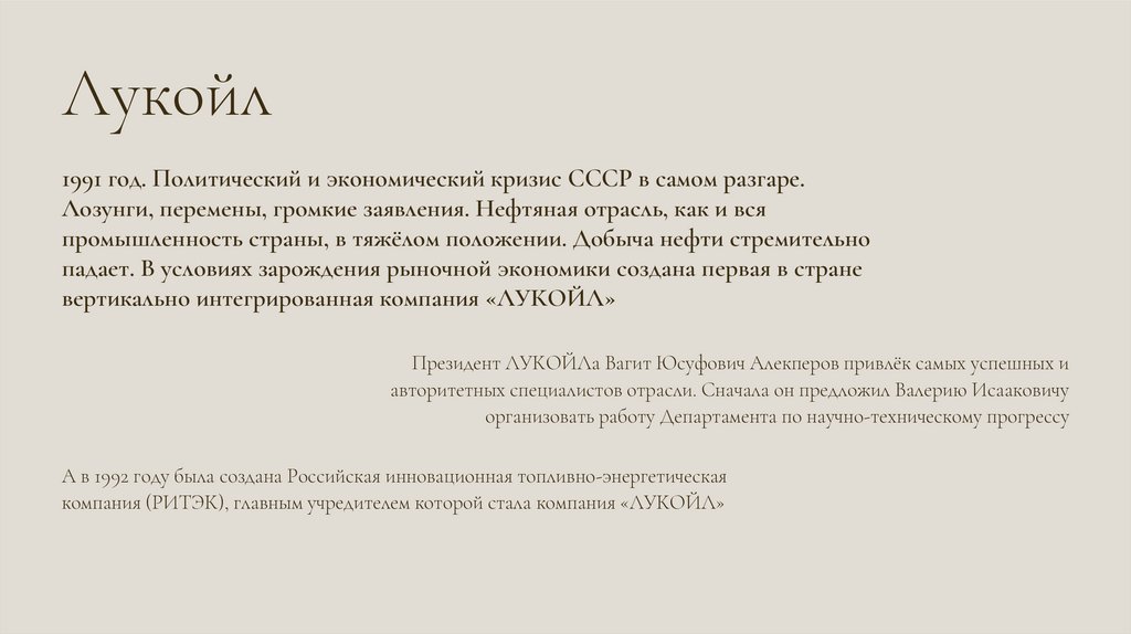 Лукойл1991 год. Политический и экономический кризис СССР в самом разгаре.