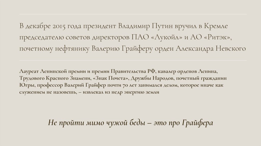 почетному нефтянику Валерию Грайферу орден Александра Невского