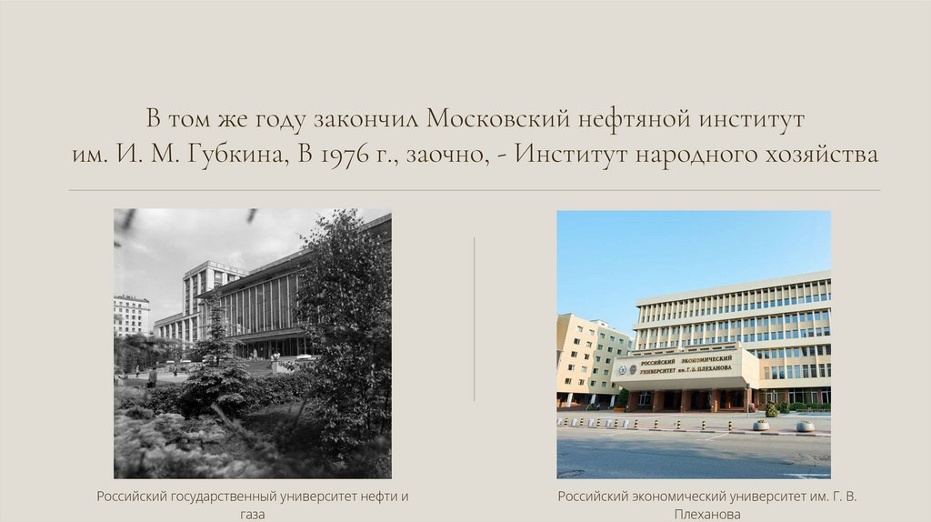 В том же году закончил Московский нефтяной институтим. И. М. Губкина, В 1976 г., заочно, - Институт народного хозяйства