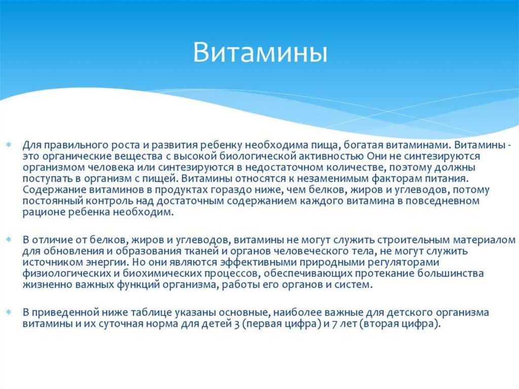 организма, способствуют нормальному физическому и нервнопсихическому развитию детей, повышают сопротивляемость организма