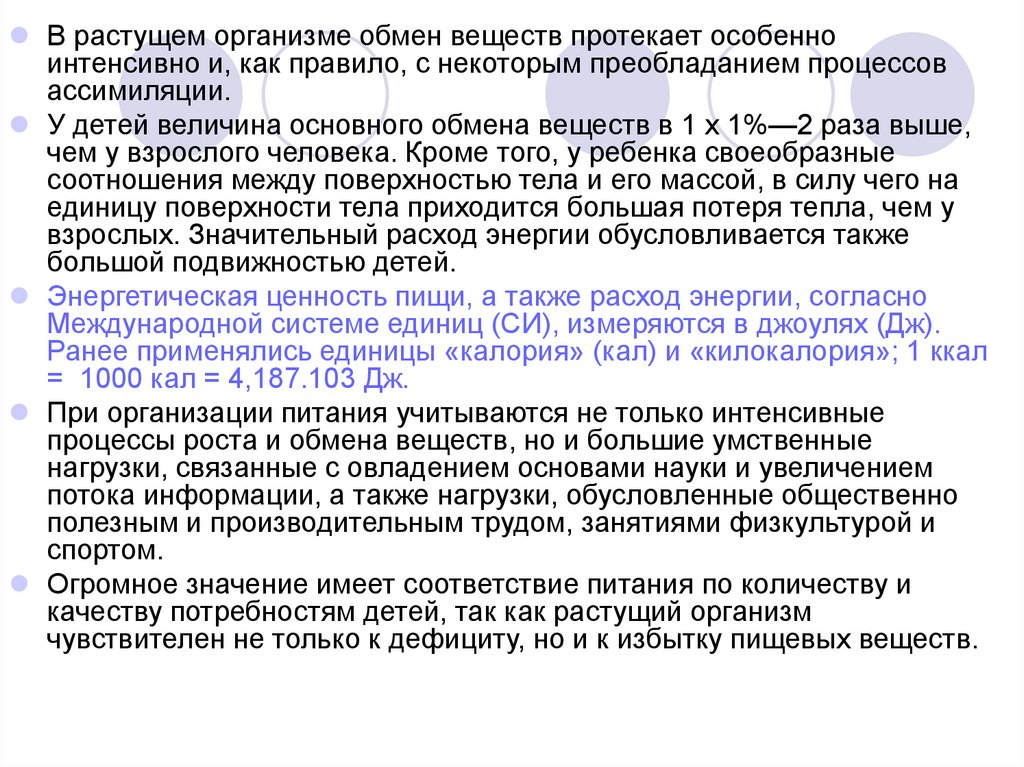 В растущем организме обмен веществ протекает особенноинтенсивно и, как правило, с некоторым преобладанием процессов