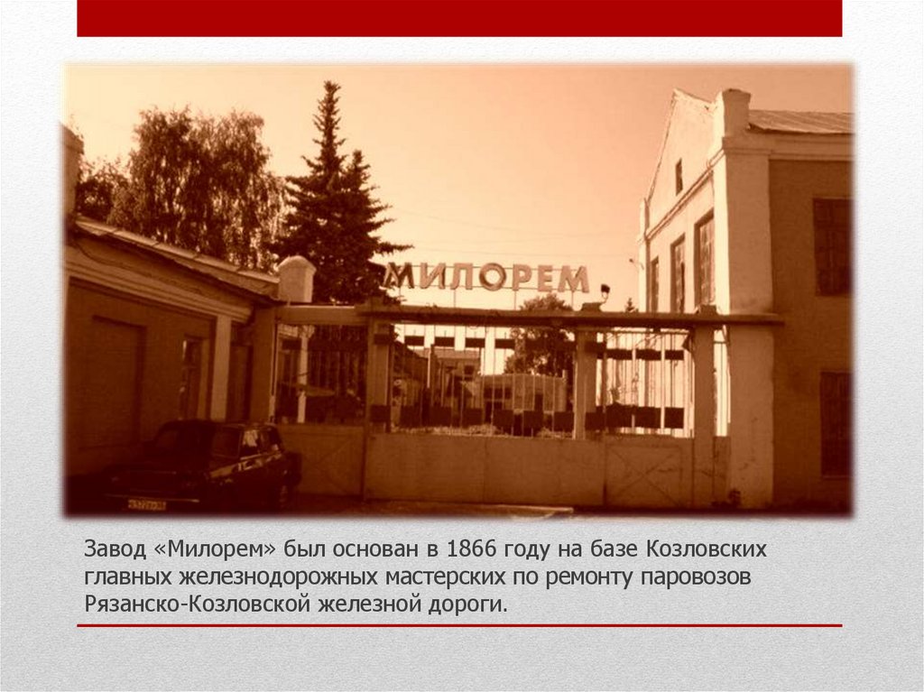 Завод «Милорем» был основан в 1866 году на базе Козловскихглавных железнодорожных мастерских по ремонту паровозов