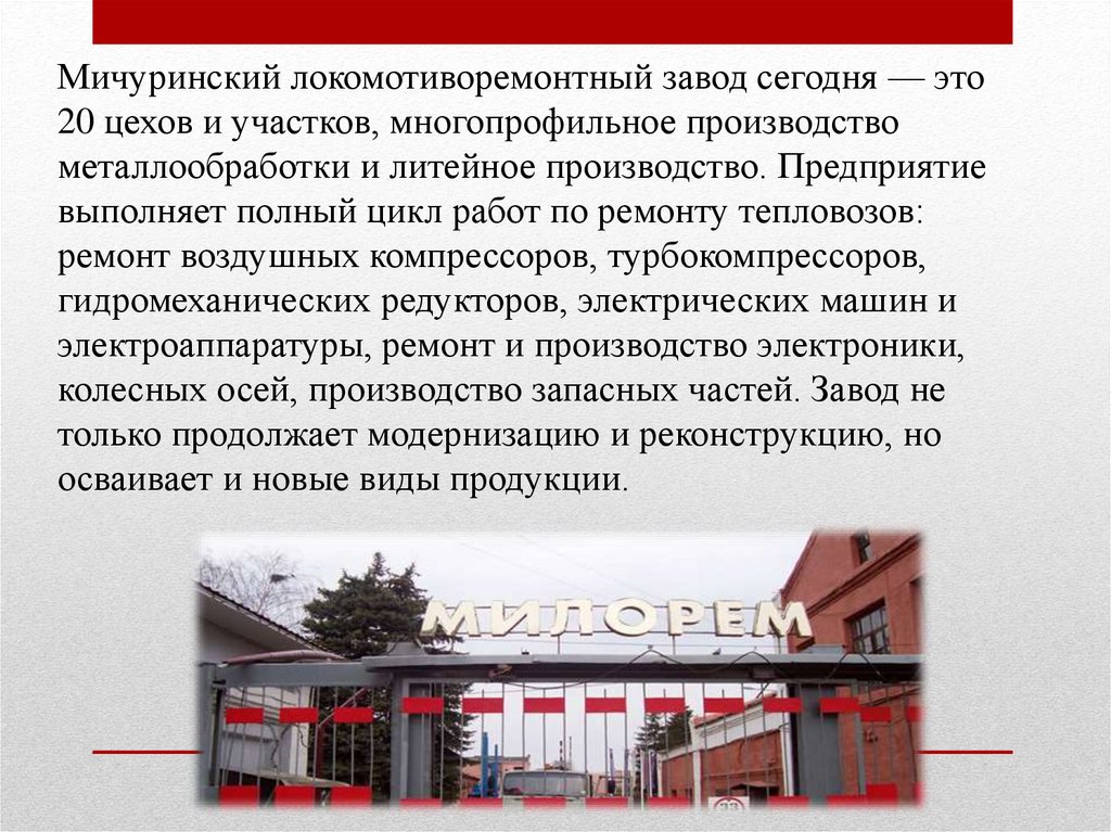 Мичуринский локомотиворемонтный завод сегодня — это20 цехов и участков, многопрофильное производство