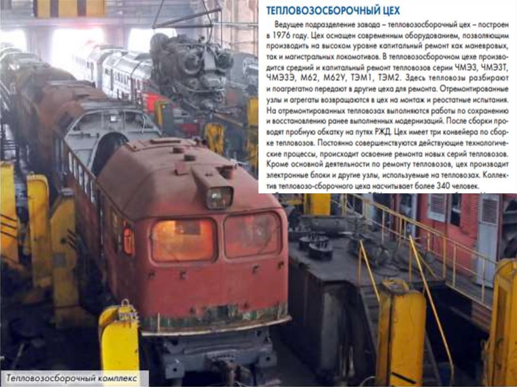 выполняет полный цикл работ по ремонту тепловозов: