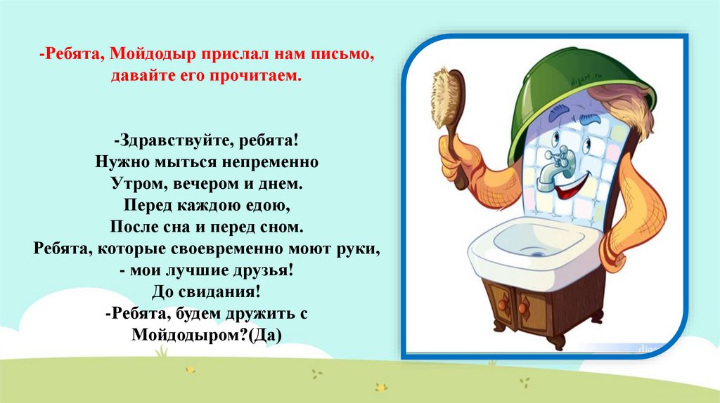 -Ребята, Мойдодыр прислал нам письмо,давайте его прочитаем.