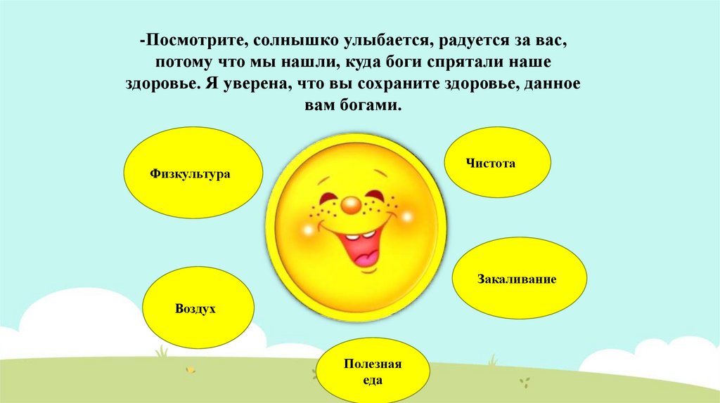 -Посмотрите, солнышко улыбается, радуется за вас,потому что мы нашли, куда боги спрятали наше