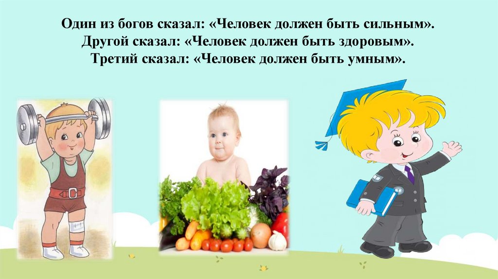 Один из богов сказал: «Человек должен быть сильным».Другой сказал: «Человек должен быть здоровым».