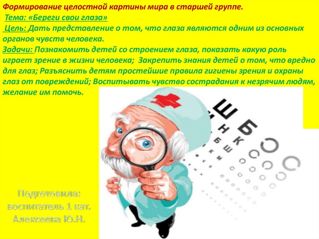 Формирование целостной картины мира в старшей группе.Тема: «Береги свои глаза»