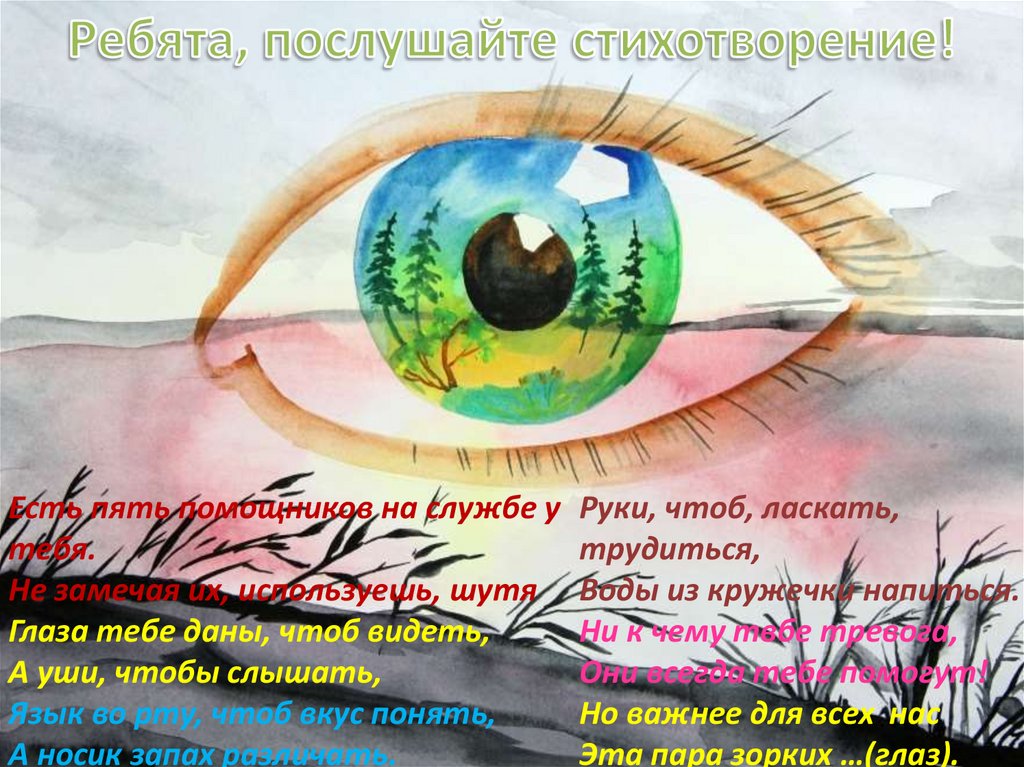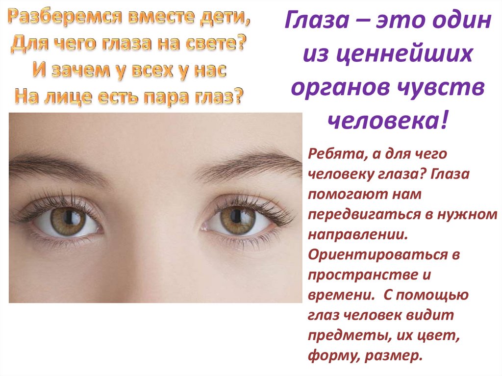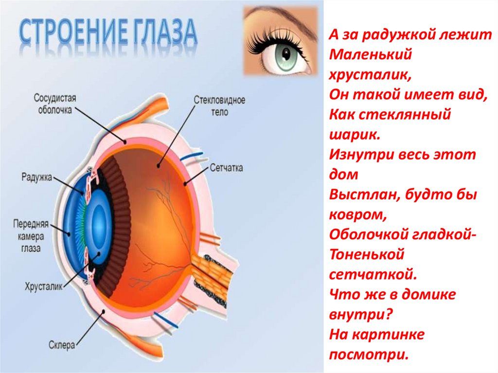 Задачи: Познакомить детей со строением глаза, показать какую роль