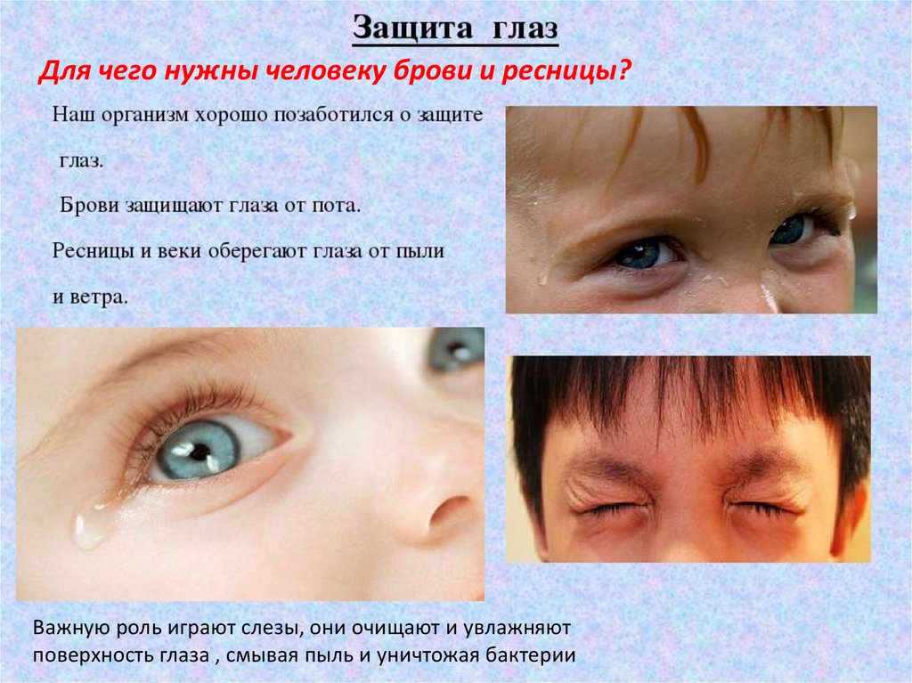 Для чего нужны человеку брови и ресницы?Важную роль играют слезы, они очищают и увлажняют